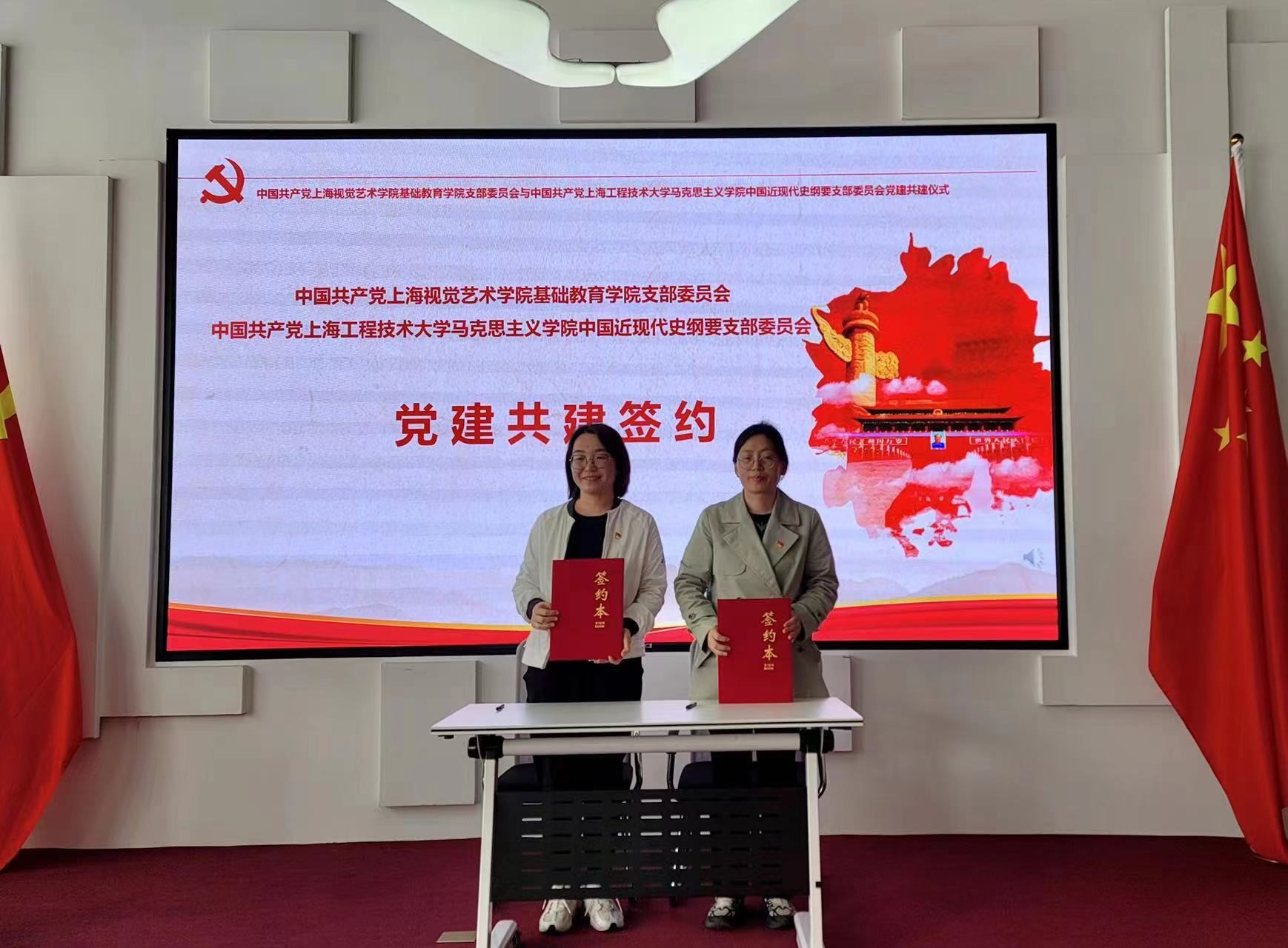 活动在上海视觉艺术学院时尚楼一楼党建服务中心举行。签约活动由上海视觉艺术学院基础教育学院党支部书记张国斌主持,上海工程技术大学马克思主义学院中国近现代史纲要教师党支部书记王美玲和上海视觉艺术学院基础教育学院党支部副书记牛玉芝代表两个支部共同签约。