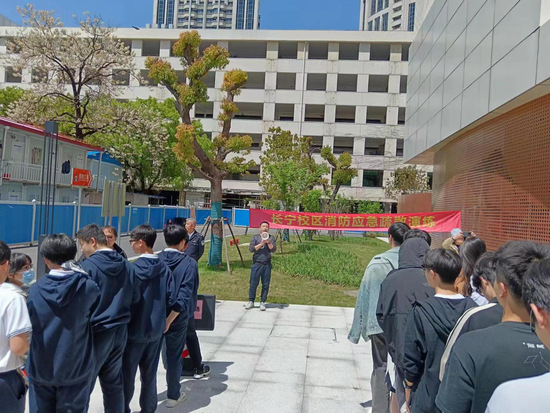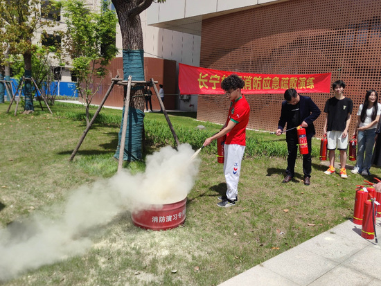应急疏散演练结束后,保卫处老师给师生们讲解了灭火器分类、操作方法和注意事项,并进行了现场示范,之后师生代表分别进行了灭火器实操演练。