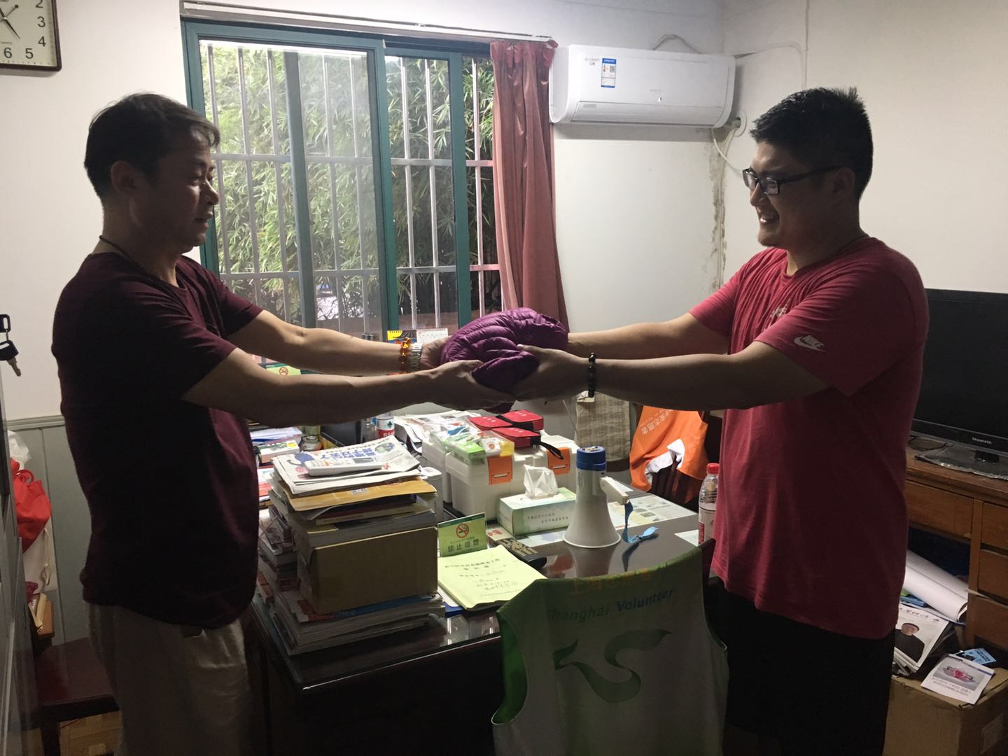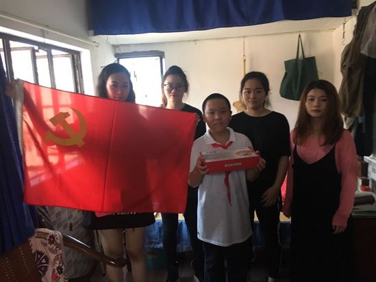 9月26日下午,中法学生党支部书记姚佳慧老师与学生党员们一起走访了仙霞街道红日居社区委会,给该社区的70岁孤老沈阿婆送上了一件崭新的羽绒服。沈阿婆由于当年政策原因,只有外地农村退休工资每月60元,维持生活已万分艰难,也很久没有为自己添置一件衣物,天气逐渐转凉,希望准备一件羽绒服过冬。中法学生党支部领取了本次微心愿以后,党员们精心为沈阿姨挑选了一件高质量的羽绒服,并将羽绒服交给了仙霞街道红日社区居委会施书记,由他代为转交。施书记对中法学生党支部走访的党员们表示感谢,并代表沈阿婆接受了这个温暖的礼物。同时,施书记也希望能够与中法学生党支部进行对接,一起开展党建进社区活动,让更多学生参与到社区志愿活动中。