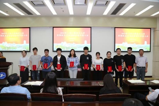 校友会办公室副主任周家樑做了2017年暑期校友寻访活动总结报告,电子电气工程学院、管理学院荣获优秀组织单位,管理学院周洁、材料工程学院周细应、中法埃菲时装设计师学院陈寅珕被评为优秀寻访教师,大会还表彰了十支优秀寻访团队及二十名优秀寻访个人。中法埃菲时装设计师学院辅导员陈寅珕、管理学院优秀寻访团队代表进行交流发言。