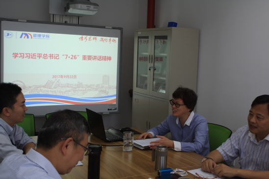 学习会上中心组成员从“7•26”重要讲话的特点及意义、牢固树立中国特色社会主义道路自信、理论自信、制度自信、文化自信,抓住重点带动面上工作,是唯物辩证法的要求,也是我们党在革命、建设、改革进程中一贯倡导和坚持的方法等方面谈了学习体会。