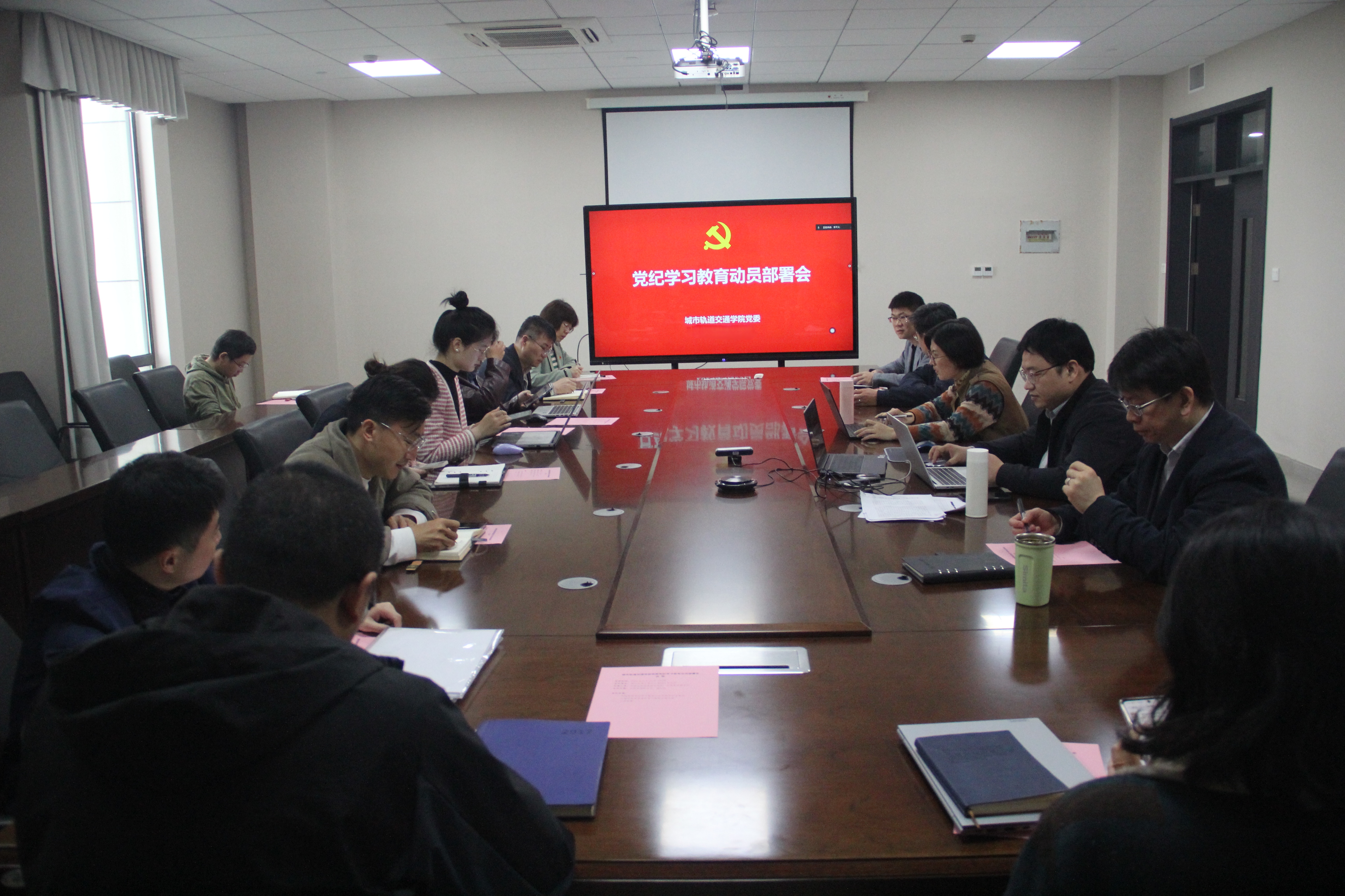 根据上级党委关于党纪学习教育实施方案的文件精神,4月19日,城市轨道交通学院党委召开党纪学习教育动员部署会,全面安排部署了学院党纪学习教育工作任务。学院领导班子及全体党支部书记参加会议。会议由学院党委副书记盛知恒主持。