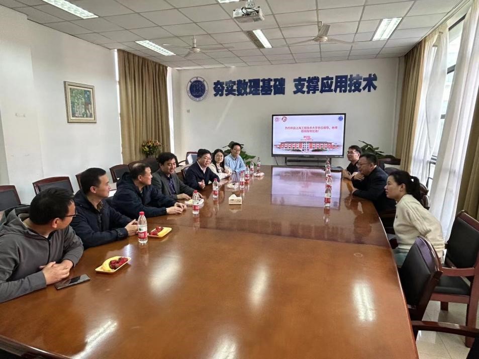为推进光电信息科学与工程专业高质量建设,4月24日下午,数理与统计学院副院长吴建宝带队,大学物理系主任秦立国、光学工程学科负责人陈光龙和光电物理系、物理实验中心部分教师一行前往上海应用技术大学理学院进行调研。上海应用技术大学理学院李以贵院长热情接待了我方一行。