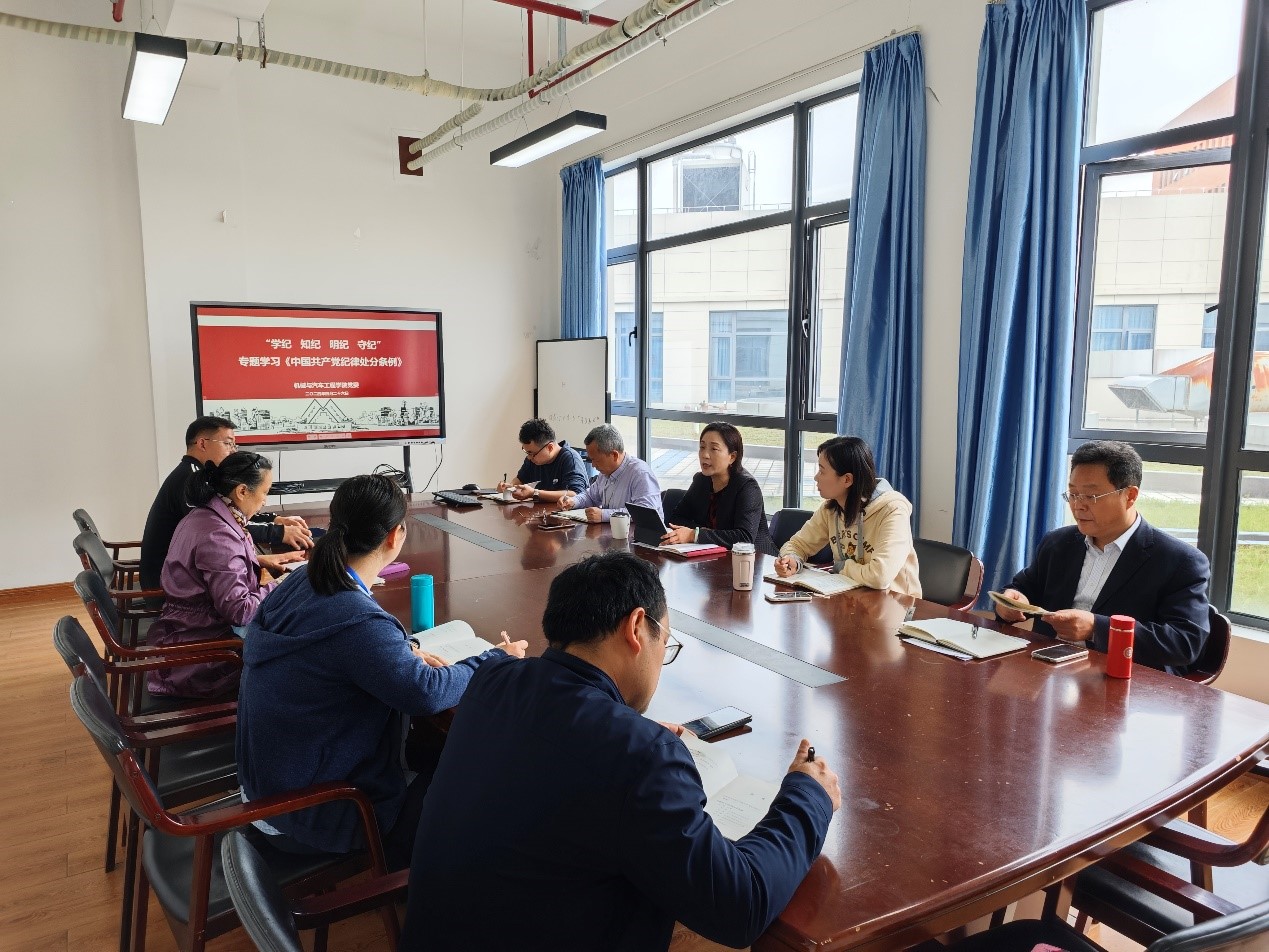 为深入学习贯彻习近平总书记关于党纪学习教育的重要讲话和重要指示精神,扎实深入开展党纪学习教育。4月26日上午,机械与汽车工程学院党委在现代交通大楼8B656开展党纪学习教育读书班(第一期),深研细读新修订的《中国共产党纪律处分条例》,学院党委书记虞蓉主持会议并领学,学院党委委员、支部书记代表参会。