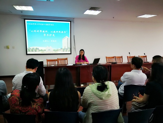 为促进教师专业发展、形成良好的教研氛围,9月29日下午,外国语学院在行政楼1508室举行了“以科研带教研、以教研促教学”学术沙龙。本次学术沙龙由大学英语口语教学团队主办,邀请应用外语教学部的青年骨干教师李映珵担任主讲。外国语学院副院长刘晓民教授、应用外语教学部主任盛越副教授、大学外语教学部副主任孙晓青副教授以及外国语学院各部系的口语任课教师参加了本次学术沙龙。