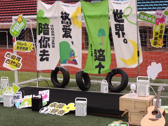 从清晨开始,工作人员便忙碌于场地的搭建与布置,确保一切设备调试完毕。活动开始之前,在操场上设有露天K歌体验区,为早到的观众提供了一场互动的前奏。