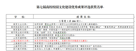 学校始终加强校园文化建设,校园文化活动丰富多彩,师生社团活动蓬勃开展,形成了“一院一品牌”特色;以建党95周年、建军90周年、抗日战争胜利70周年等重要节点,唱响校园主旋律,开展学习、参观、庆祝、表彰等各类活动,培养爱党、爱国、爱校情怀,荣获教育部高校校园文化建设优秀成果二等奖,连续蝉联“上海市文明单位”等荣誉称号。