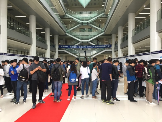 “驱动梦想,绽放青春,智启未来-2018上汽全国校园招募行动”上海工程技术大学专场招聘会于10月16日在我校图文信息中心成功举办。上海汽车集团股份有限公司携同下属企业上海大众汽车有限公司、上海汽车变速器有限公司、上海汽车国际贸易有限公司等40家单位参加。上海工程技术大学党委副书记、副校长史健勇在学生工作部(处)长、研究生工作部长朱蓓、学生工作部(处)副部(处)长周慧艳、汽车工程学院党委副书记马建立的陪同下,会见了上海汽车集团股份有限公司人事总监何兰芳一行,学生就业指导服务中心全体老师及就业工作辅导员全程参加了招聘会。