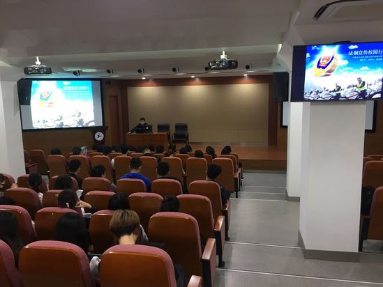10月17日上午,校保卫处、中法埃菲埃菲时装设计师学院和上海市公安局文保分局沪西高校派出所在长宁区教学楼报告厅共同举办了一场针对2017级新生的安全教育。此次安全教育以“法制宣传校园行”为主题,提升学生的安全意识为目的。我校保卫处副处长何利成老师,服装学院党委副书记、中法学院学生工作负责人张漪老师,2017级新生辅导员陈寅珕老师与2017级新生共同参加了本次安全教育。
