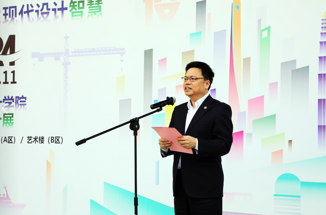 副校长夏春明致开幕辞。他表示,近年我校设计学科取得了快速长足发展,设计学软科排名持续攀升,书写了艺术设计学院高质量发展的新篇章。当下设计学科的发展要立足于服务地方经济社会发展大局,紧扣产教融合办学特色,贯彻落实OBE理念,全面推动高水平的应用型艺术设计人才培养。