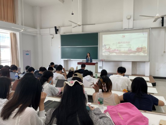 会上,王新燕分析了今年的经济形势和就业情况,引导同学们做好职业规划;详细介绍了2024年毕业生征兵工作的时间安排,征集对象要求和征集条件,入伍大学生的优待政策等;针对同学们提出相关问题作了详细解答;鼓励同学们积极报名参军,投笔从戎,参军报国,将个人所学融入到国防现代化建设中去,到祖国最需要的地方建功立业。
