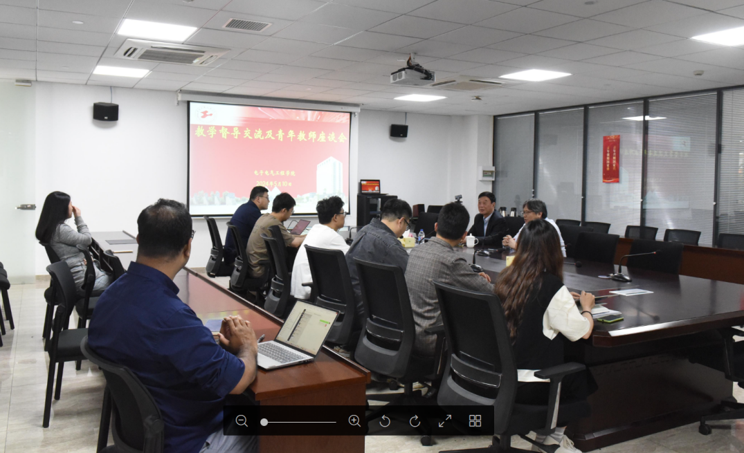 为进一步提升学院教师教育教学能力,5月10日,电气学院教发分中心结合教学质量月活动,召开教学督导交流以及青年教师座谈会,特邀学校老教授协会副会长、关工委副主任陈力华教授出席,学院副院长王晓军、近五年学院新进教师参加,活动由王晓军主持。