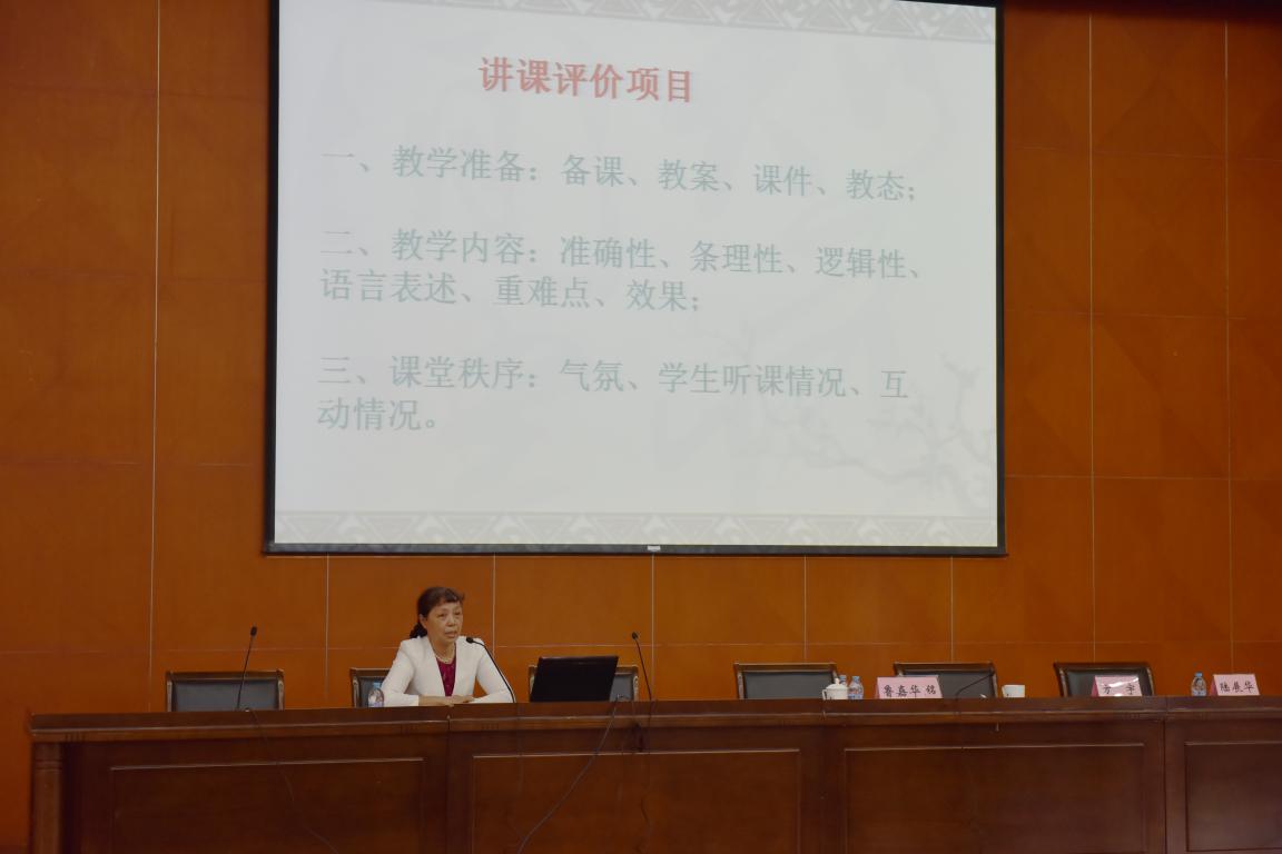 学院教学督导高歌教授随后就教学质量周的听课情况进行反馈,高老师从教学准备、教学内容、课堂秩序以及仪态仪表等几个方面进行针对性的说明,也从大纲、教案、课件等教学资料的规范方面进行解释,通过反馈让授课教师能够更加深刻的理解如何进行课堂教学以及如何上好每一堂课。