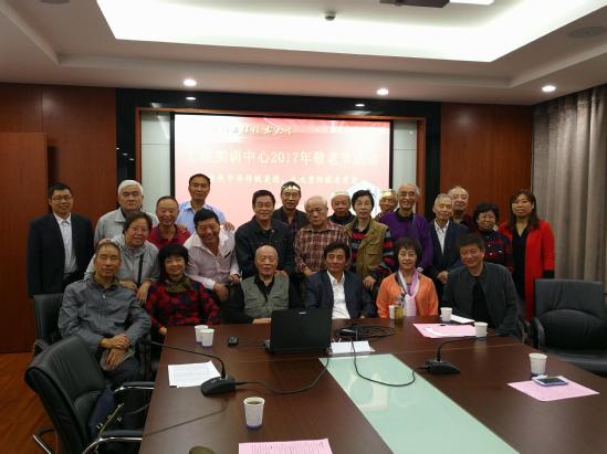 金秋十月桂花飘香, 10月19日,工程实训中心在仙霞校区103会议室厅举办了“传承中华传统美德,九九重阳敬老爱老”为主题的2017年退休教职工回娘家活动。中心党总支书记胡义刚,副主任朱建军,工会主席蒲永红、教师代表及退休教职工近30人出席了本次活动,活动由中心工会主席蒲永红主持。