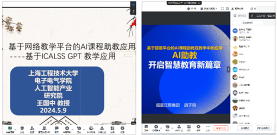 会上,超星集团项目总监胡子琦以“AI助教开启智慧教育新篇章”为主题,介绍并演示了基于超星平台AI课程助教在教学中的应用,包括AI助教在智能答疑、学习资料查找、语音指令等方面的具体应用。校人工智能产业研究院常务副院长王国中教授介绍了基于ICLASS平台AI助教ICLASS GPT的教学应用。王教授指出,人工智能的发展对学、教、考、评、管都将产生颠覆性影响,尤其是AIGC的出现为教学带来了革命性变化,老师们要利用好先进的信息化工具,坚持数据驱动、问题导向,优化好自己的课程。互动交流环节,老师们就如何结合现有课程资源使用AI助教、如何将知识图谱与AI助教相结合开展教学等问题进行了深入交流。