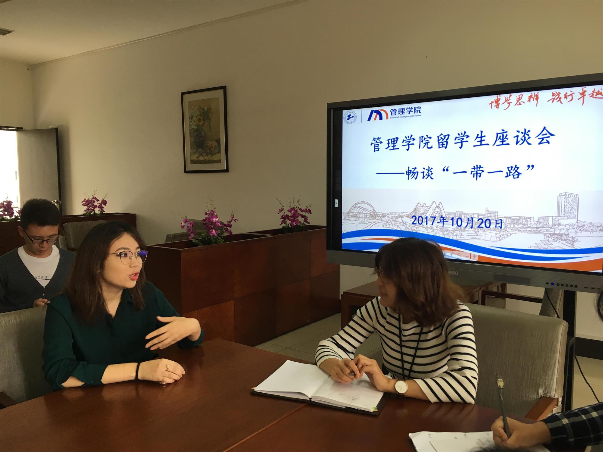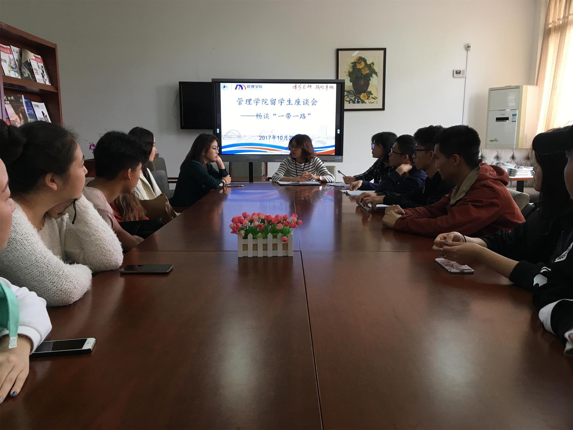 10月20日中午,时逢党的十九大召开之际,管理学院邀请本硕留学生代表共同在F116畅谈“一带一路”建设,参加座谈会的还有部分辅导员老师及中国籍学生。此次座谈会旨在发挥文化包容性,关爱留学生,了解留学生同学们在文化差异上的适应性需求,同时也为留学生与中国学生搭建一个相互了解的平台,分享“一带一路”建设成果,强化共同体意识。