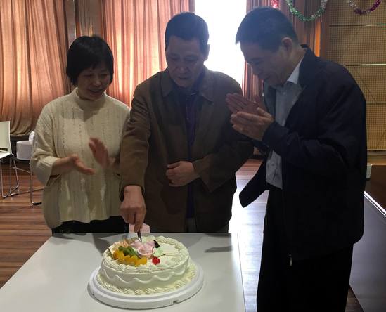 大家为今年70周岁的倪绍富老师举办了集体生日。在欢快的生日歌中,老同志们品尝着蛋糕的香甜,分享着退休后的精彩生活。老前辈们与青年教师座谈,共话学校教育教学改革,交流心得体会。