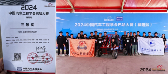 5月7日至11日,由中国科学技术协会指导,中国汽车工程学会主办,襄阳市政府支持的2024中国汽车工程学会巴哈大赛在湖北襄阳市开赛。来自全国各地的高等院校、职业院校齐聚襄阳赛场,展开了一场精彩的竞技盛宴。经过设计报告、商业营销、操控性、单圈计时、耐力赛等多个项目的激烈角逐,上海工程技术大学龙腾巴哈车队凭借出色的表现,荣膺综合成绩三等奖。