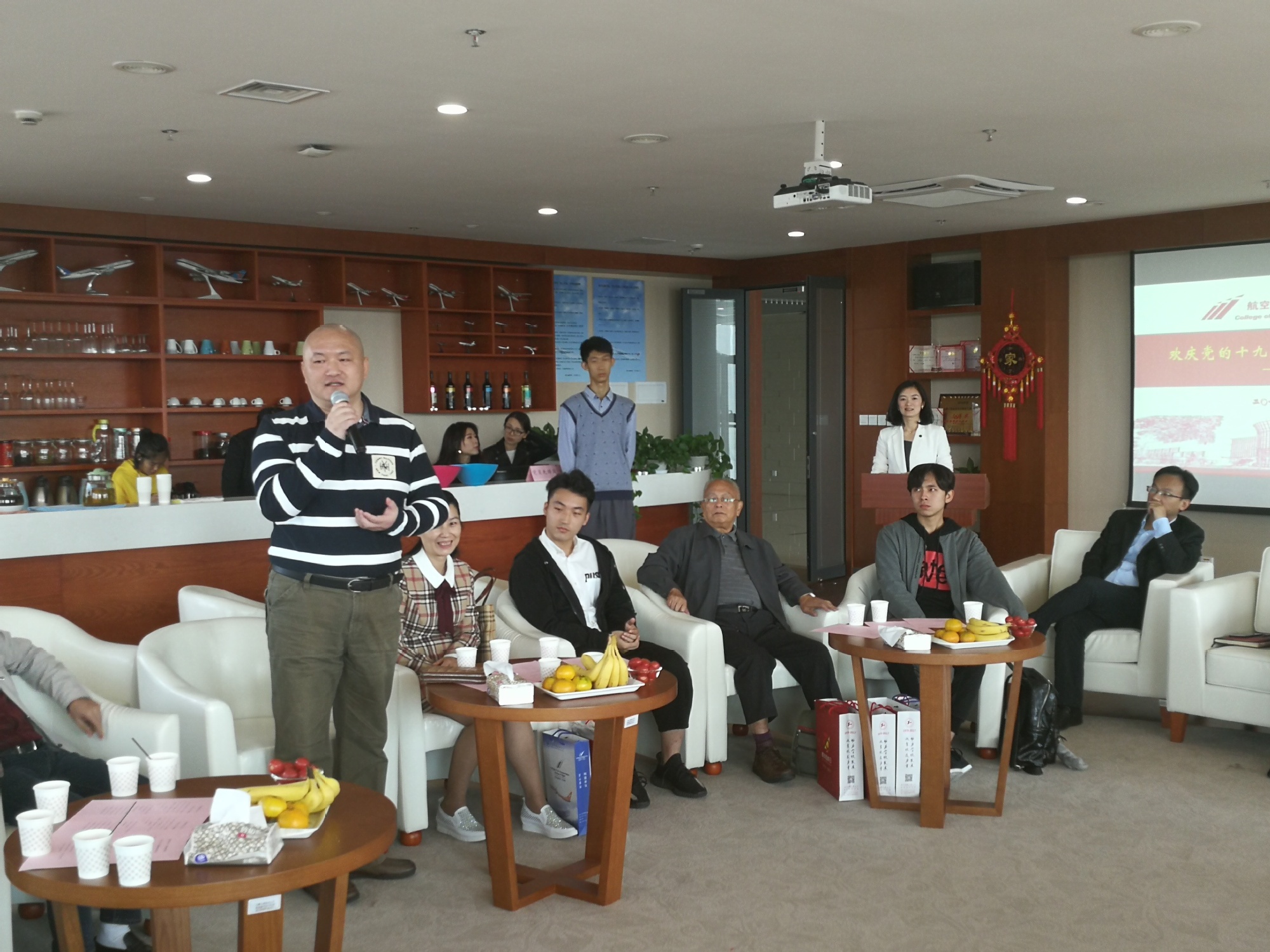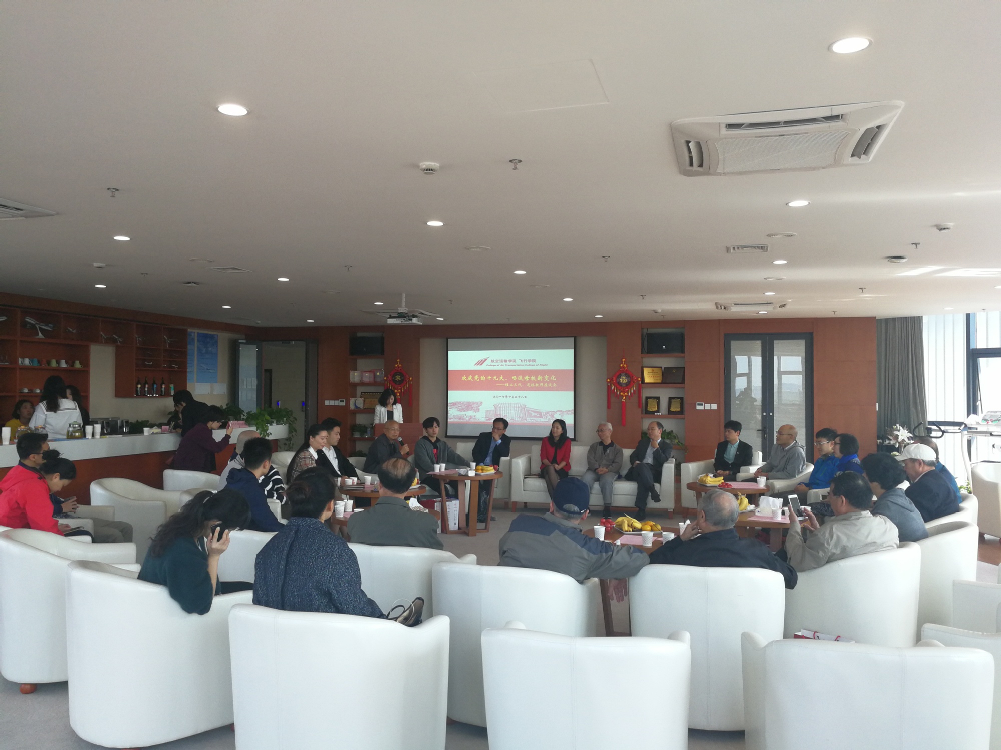 10月28日,航空运输学院在航飞楼工会之家召开“欢庆党的十九大、畅谈母校新变化”暨“程二三代”、退休教师座谈会,航空运输学院党政班子、学院退休教师代表、四组“程二三代”校友家庭出席活动,活动由工会主席吴菁老师主持。