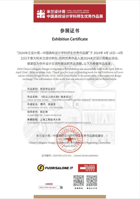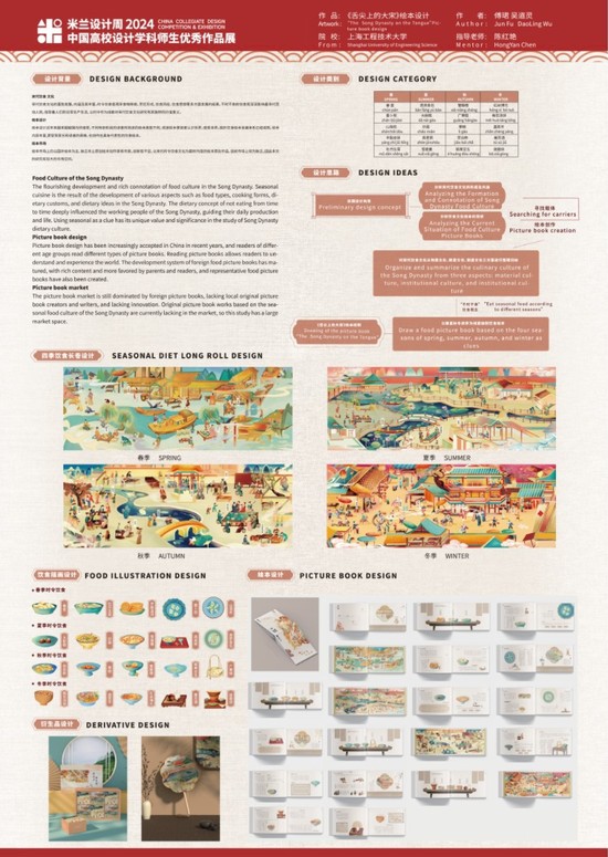 据悉,“《舌尖上的大宋》绘本设计”之前曾获得2023年米兰设计周——中国高校设计学科师生优秀作品展全国决赛一等奖,此次作为全国众多获奖作品中的精品赴米兰参展。