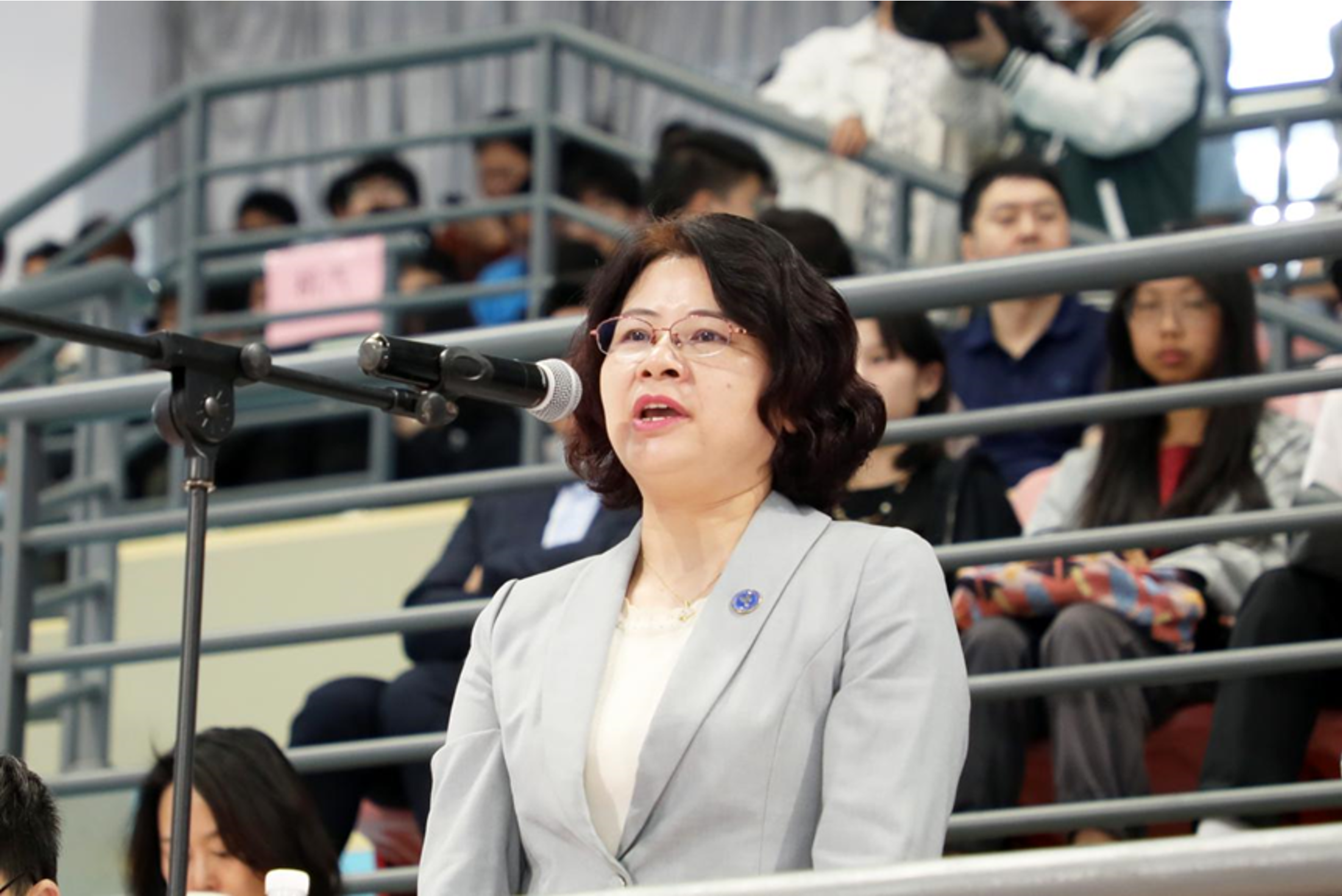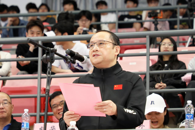 校党委副书记、副校长、校体育委员会主任朱晓青主持运动会开幕式。