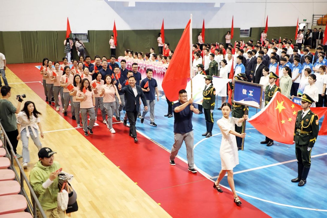 随着激昂的音乐声响起,在国旗、校旗、鲜花等方阵带领下,各二级学院师生运动员代表身着特色鲜明的服装,迈着整齐划一的步伐依次入场。各方阵通过激昂的口号展示各学院积极向上的精神风貌,博得现场师生阵阵掌声。