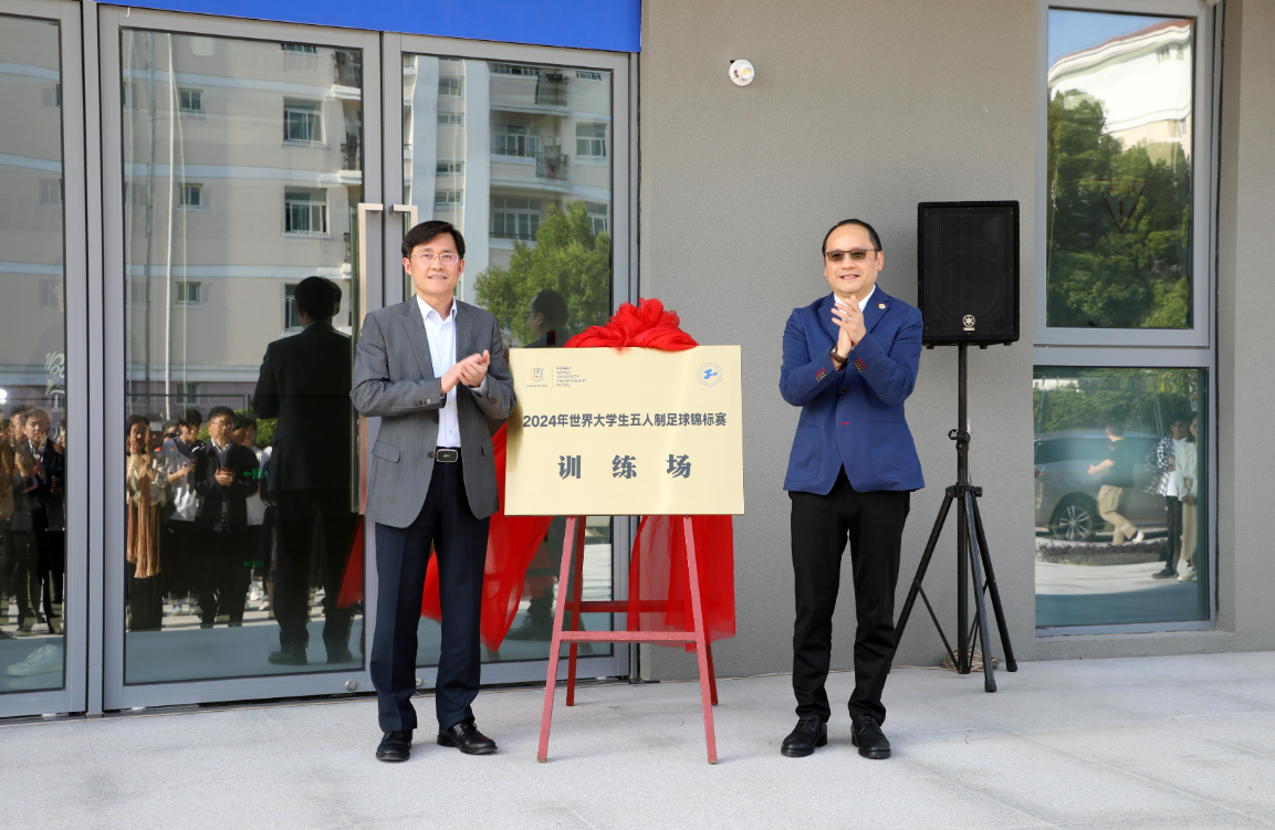 李江书记宣布2024年世界大学生五人制足球锦标赛训练场正式启用。