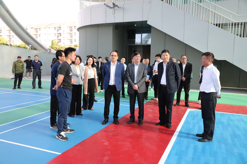 市教委体卫艺科处、宣传处、规划处,松江区体育局,我校相关职能部处负责人陪同考察。