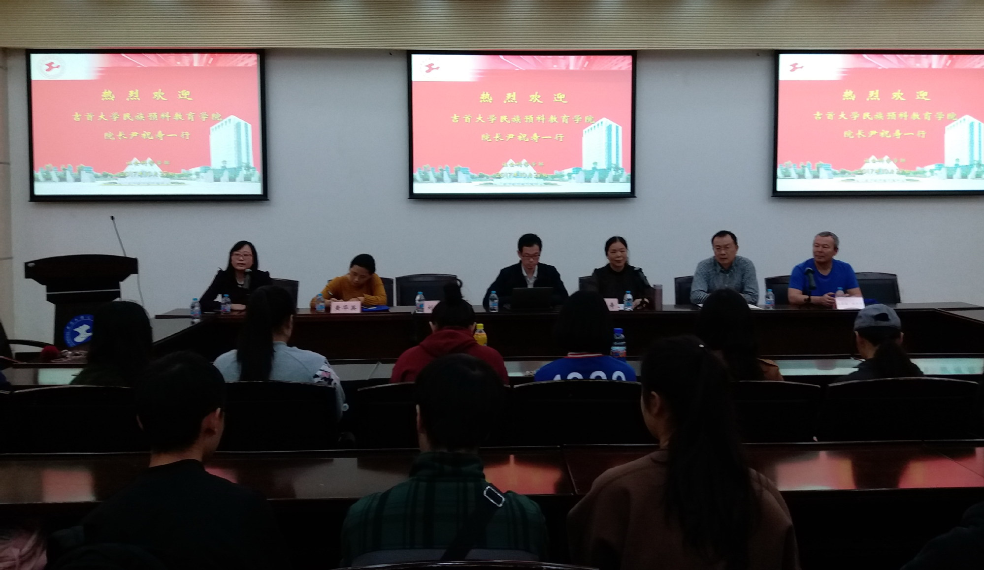 最后,社会科学学部程玉莲副书记感谢尹院长一行的到来,感谢尹院长对同学们的关心,并祝愿吉首大学预科学院越办越好,两院的感情地久天长。