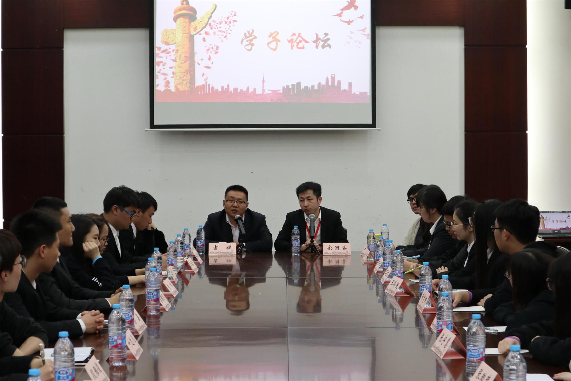 10月28日下午,时逢学校39周年校友返校日,学子论坛活动于图文信息中心第五报告厅拉开了序幕,管理学院邀请到优秀毕业生2012届管理学院团委学生会主席余国喜校友主讲了此次学子论坛。管理学院团委书记吉祥、副书记王瑜,团委学生会的干部们一同参加了此次学子论坛。