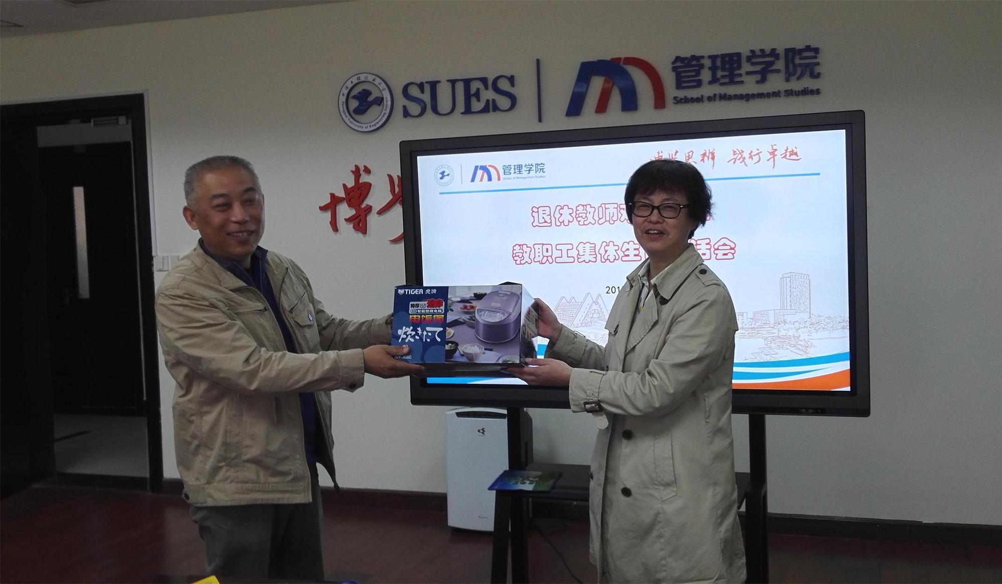 会上,刘明老师与在场的同事们一起回忆自己从来到管理学院至今的往事,寄语年轻老师们要以“蜡炬成灰泪始干”和“要给学生一杯水,老师要有一桶水”的标准来要求自己做一名合格的教师。他回忆起与同事们工作的幸福时光,并祝福学校和同事们的未来更加美好。管理学院党委书记周洁老师肯定了刘老师的敬业精神和任劳任怨地为学院所做出的贡献,希望他退休后能对学院的工作一如既往地给予支持,祝福他保重身体,积极参加健康、有益的活动,退休生活丰富精彩,并代表学院送上了纪念品。学院工会主席、国贸系主任陈雅萍老师回忆了刘老师在为国贸系兢兢业业上课的点点滴滴,例如是在年龄较大的时候勇于承担新课,为系里分担教学任务的事例。与会其他人员也深情回顾了与刘老师工作、生活、交往等方面的点点滴滴,感谢他在教学中做出的榜样和对青年教师的关心,言谈中浸透着依依惜别之情。