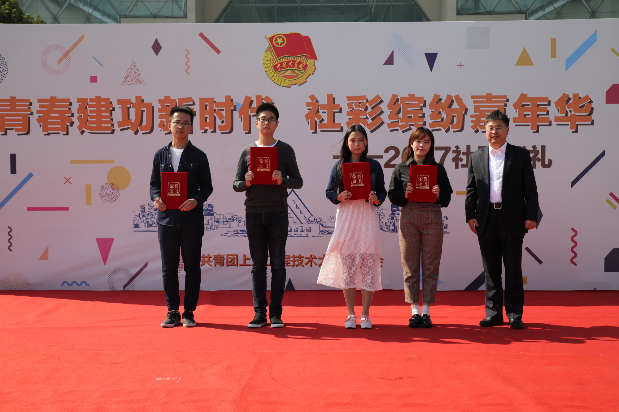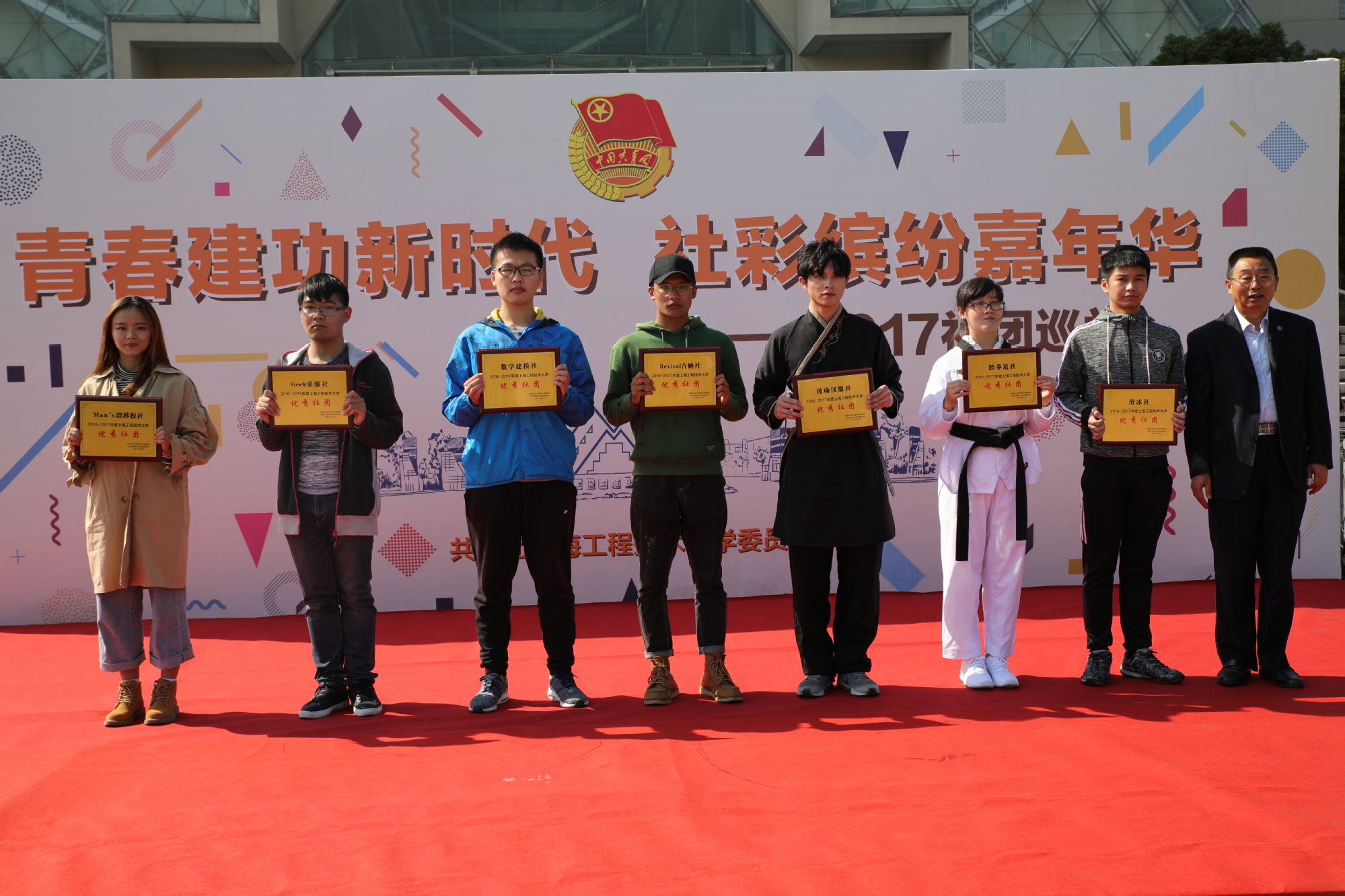 颁奖仪式以工程大青年的一首原创歌曲《青春挑战季》拉开序幕。随后,校领导分别为获得“2017年度社团工作先进个人”、“2017年学生艺术团先进个人”、“2017年度校优秀社团”、“2017年度校明星社团”、“2017年度社团优秀指导教师”以及“2017年度校社团先进工作单位”等奖项的获奖代表颁奖。