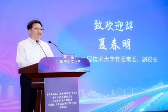 夏春明致欢迎辞并指出,提升大学生法治文化的引领力、生命力和影响力是依法治校,增强法治育人功能的内在要求。开展法治文化节活动,有助于让学生在参与喜闻乐见的活动中自觉接受沉浸式法治教育,从而提升法治素养,增强对法治文化的获得感、幸福感。