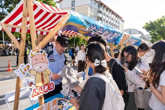张祎指出,法治文化是推进全面依法治市的重要支撑和强大动力,也是彰显上海城市文化品牌的核心标识。各部门、各单位、各高校要充分借助法治文化节、民法典宣传月和“谁执法谁普法”宣传月契机,大力推动习近平法治思想进教材、进课堂、进头脑,打造“小城杯”公益之星创意诉讼大赛、“法治松江”公益广告大赛等更多法治文化硕果,构建嵌入式、融合式、浸润式“三式”普法大格局。