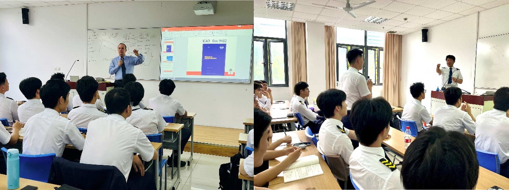 5月20日下午,上海吉祥航空公司Caramori De Moraes Emerson机长和我校2016届飞行技术专业毕业生张玥副驾驶受邀走进《陆空通话(全英语)》课堂,为飞行学院的学生们带来了一堂全英文的陆空通话课程。