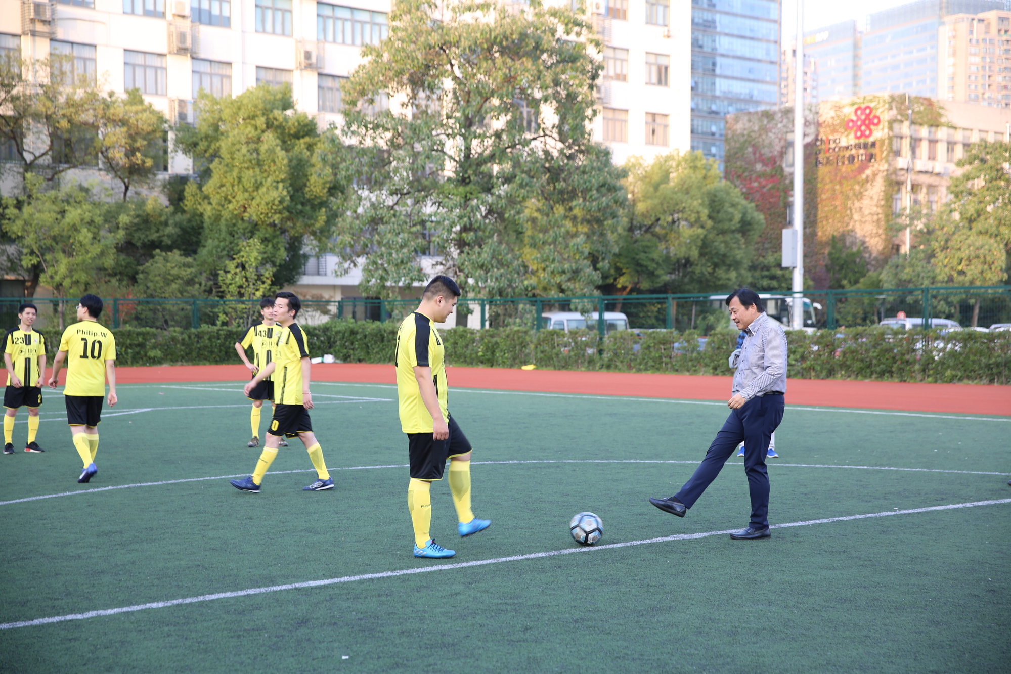 校党委副书记、副校长史健勇为本次校友足球友谊赛开球。他希望以后能有更多的校友加入到“中法学院足球爱好者校友分会”,以足球这一共同的爱好,定期活动,切磋球技,联络感情。