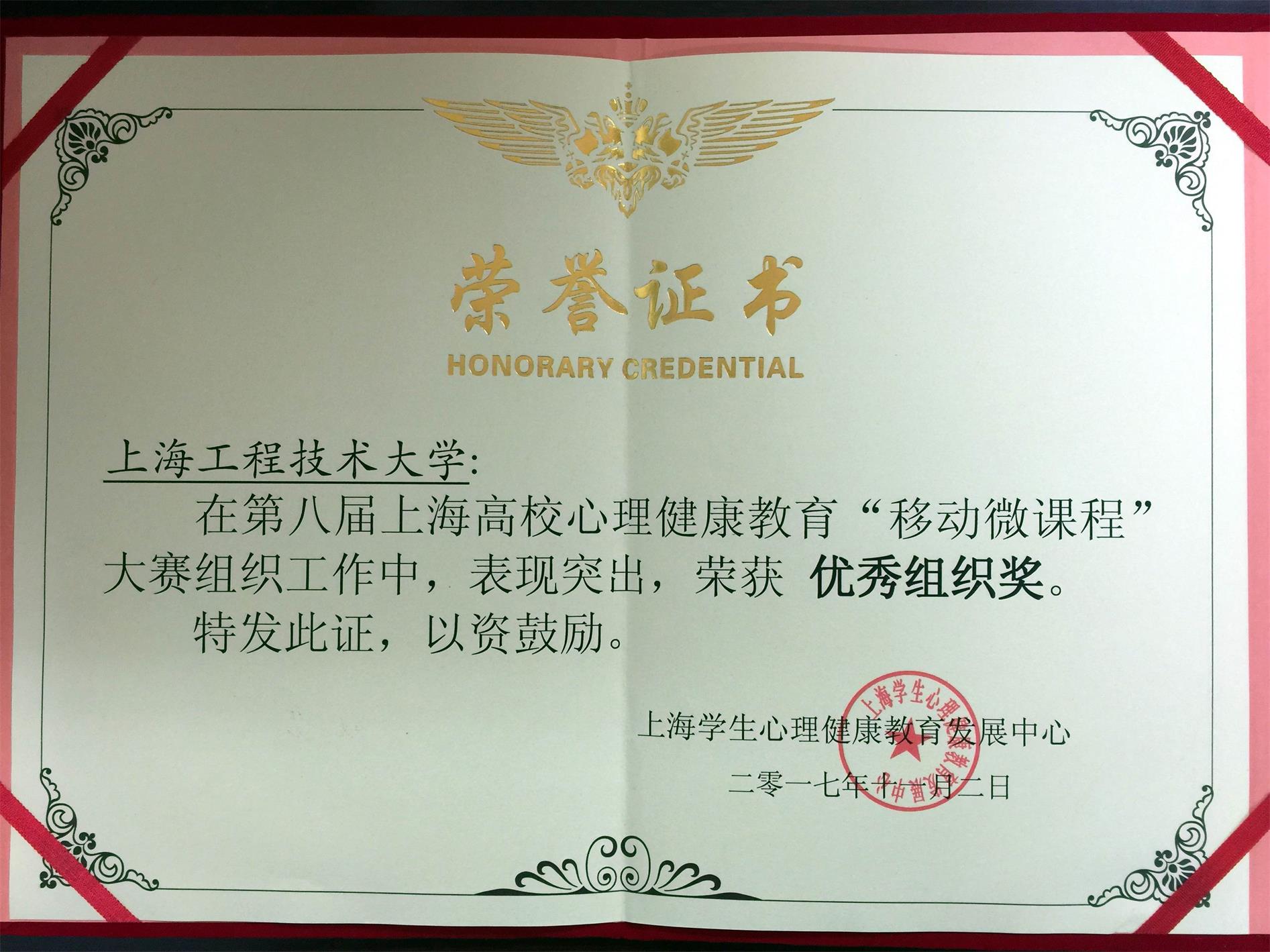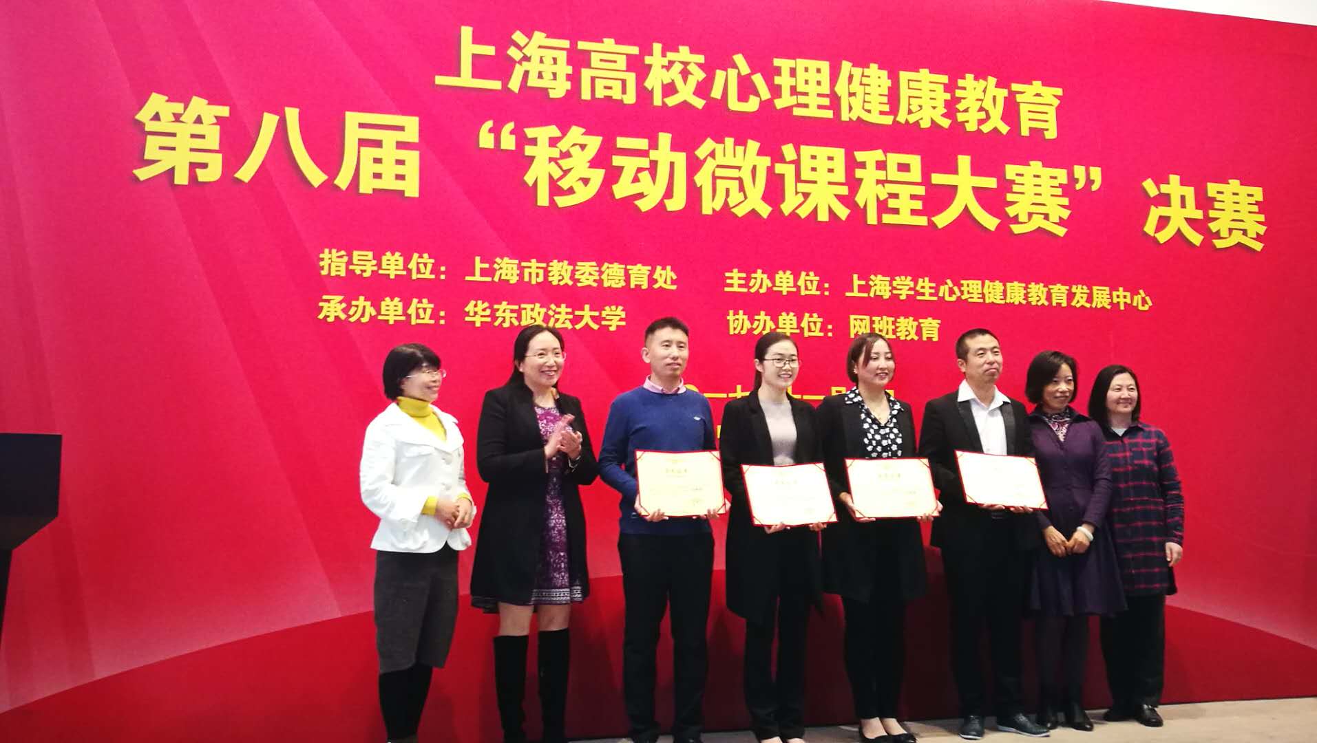 在刚刚举办的第八届上海高校心理心理健康教育移动微课程大赛中,我校获得优秀组织奖,我校四位教师获得个人奖项。