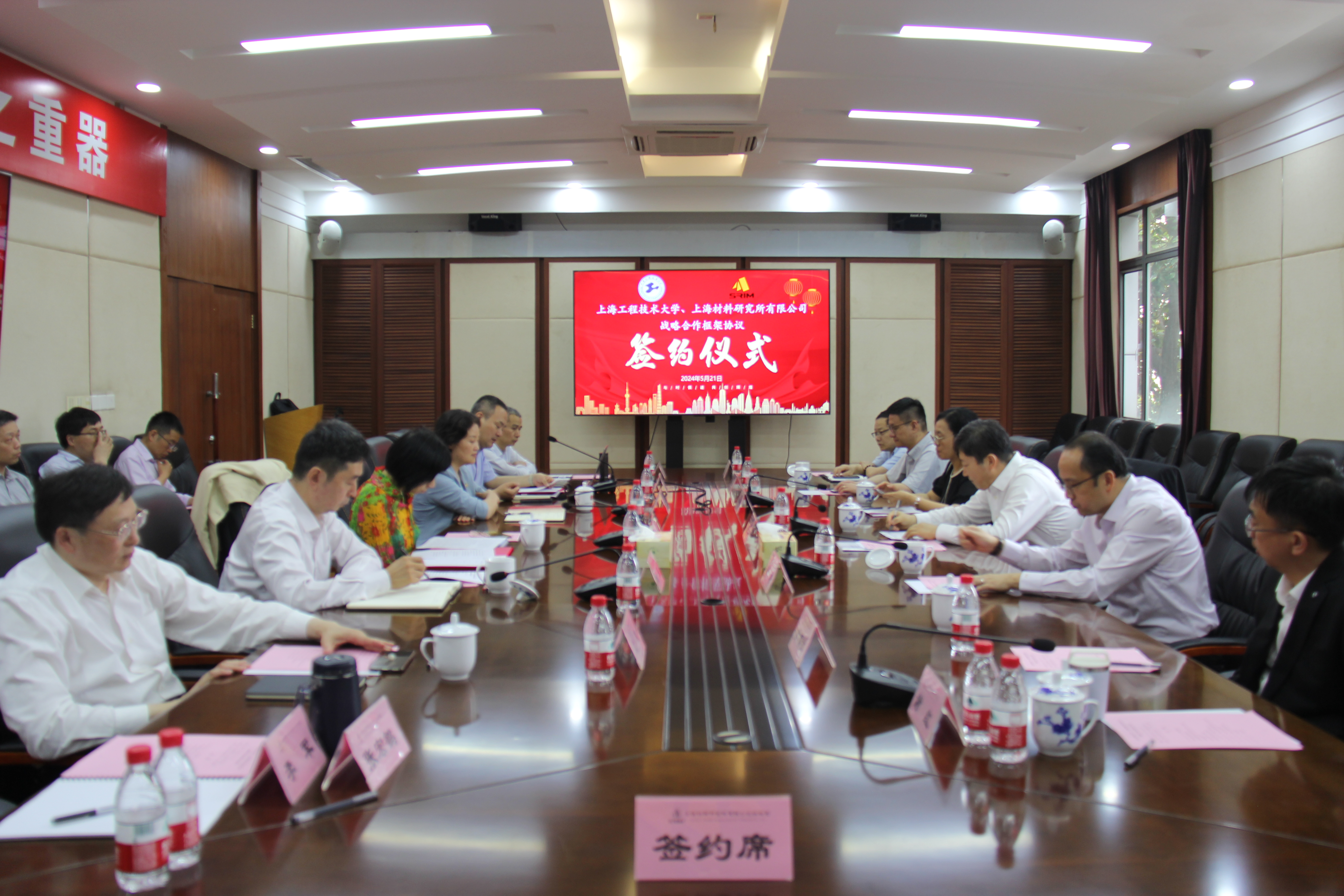 在徐枫书记及双方领导的共同见证下,上海材料研究所有限公司总经理孙丹与上海工程技术大学副校长许开宇分别代表双方共同签署战略合作协议。