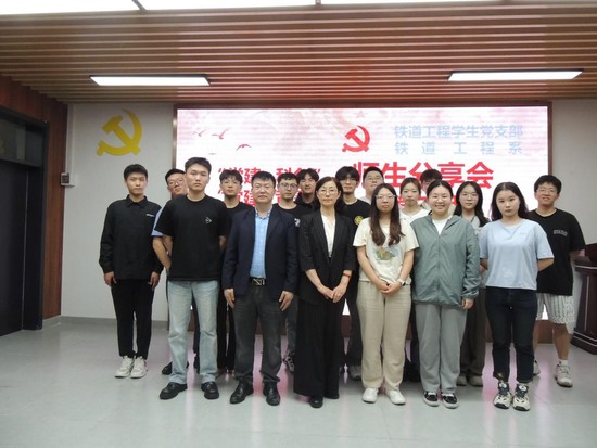 校五四青年奖章集体获得者、党员教师石嵘围绕铁道工程专业教学、科研、人才培养等最新发展成果进行了介绍。教师党员路宏遥围绕自己多年来的科创竞赛指导情况进行了交流分享。铁道工程学生党支部2022级研究生党员、全国大学生程序设计竞赛铜奖获得者杨雨涵,国家奖学金获得者贾文琦作为联系大三、大四年级团支部结对代表,分别围绕日常工作联系年级情况和个人科研进行了交流分享。全国大学生结构设计大赛一等奖获得者卓晟贤、上海市数学建模竞赛二等奖获得者徐浩杰分别就参加全国专业大赛、数模建模竞赛和社会实践工作进行了交流分享。2024年考取西南交通大学、河海大学、上海工程技术大学硕士研究生的三位毕业班党员毕立志、冯至和滕宇同学分别围绕考研经历和个人入党后思想转变过程进行了交流分享。