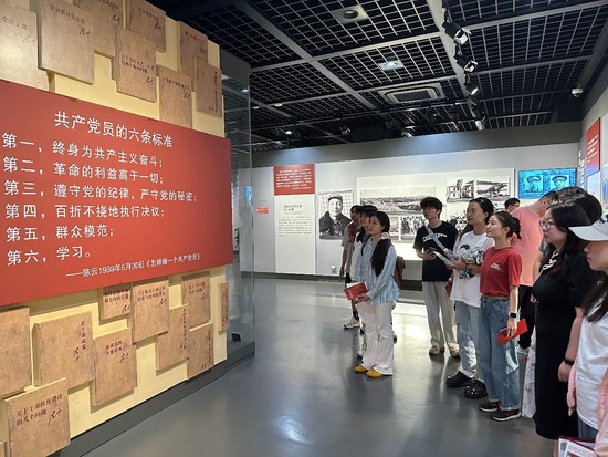 在陈云纪念馆展厅,学生党员驻足于“共产党员的六条标准”展牌面前,对照标准,深刻体会如何做一名新时代合格共产党员。在“纪律建设永远在路上”中国共产党纪律建设历史陈列展厅,学生党员回顾党的纪律建设历程,深刻感受党的纪律建设重大意义,纷纷表示要按照习近平总书记的要求,强党性,正党风,守党纪,把党的纪律内化为积极健康的行为习惯,做遵纪守法的模范。