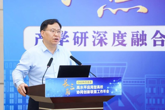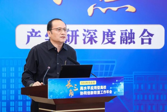 5月23日下午,2024年长三角G60科创走廊高水平应用型高校协同创新联盟年会在我校图文信息中心第三报告厅举行。松江区推进G60科创走廊建设专责小组办公室主任、G60联席办主任、松江区委常委、副区长刘福升,G60联席办副主任、松江区科创发展办党组书记、主任郭淑晴,G60联席办科创组组长、松江区科创发展办党组成员、副主任宋苏伟;安徽工程大学副校长凤权、嘉兴大学副校长王立玮、合肥大学副校长陈秀以及长三角G60科创走廊高水平应用型高校协同创新联盟高校相关负责人;校长俞涛,副校长夏春明以及相关职能处室负责人出席会议。会议由对外联络办公室主任朱蓓主持。