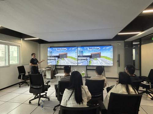 徐建华带领大家参观了航空运输学院实战模拟救援空间、航飞拆解部件实验室、飞行模拟器训练中心。