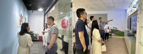 最后,启东市一行来到科技园长宁校区,参观了园区科技型企业家育汇康和文创类企业一书一课,并参与体验可以应用于教学的数字人课堂。