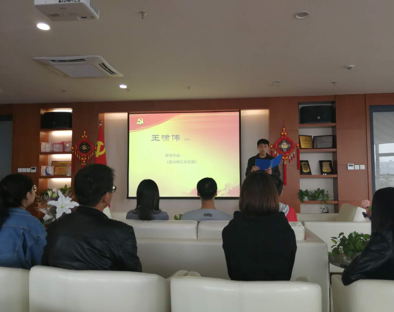 朗诵会在主持人研究生徐露的“坚持不懈,弘扬传承十九大精神”致辞中拉开序幕。朗诵会上,研究生同学们以饱满丰富的精神面貌倾情奉献了《祖国啊,我亲爱的祖国》、《可爱的祖国》等红色经典作品,表达了对祖国和中华民族的热爱,和对革命先烈的缅怀、感恩之情。王啸伟同学朗诵《面对鲜红的党旗》,他洪亮有力、激情澎湃的嗓音感染了在场的每一位听众,仿佛在号召大家以永不懈怠的精神状态和一往无前的奋斗意识继续朝着中华民族伟大复兴的中国梦不懈努力。活动最后,全体支部党员在激昂的《国际歌》声中,面对党旗,在领誓人的带领下宣读入党誓词,重温自己对党忠诚的誓言,表达了为党的事业奋斗终身的决心和愿望。