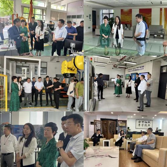 袁蓉带领德州市一行参观了上海工程技术大学沙盘,详细介绍了学校历史与发展情况。德州市一行还参观了机械与汽车工程学院的工厂化操作车间、航空模拟飞行实验室、人工智能5G实验室等。