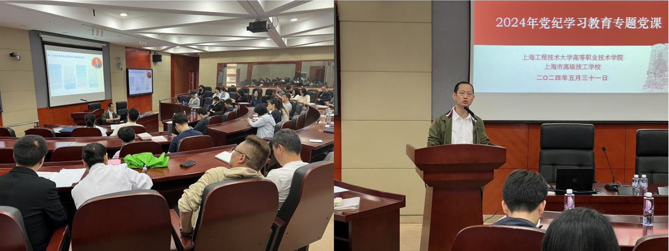 5月31日,高职学院、高技校党委书记王振钧在教学楼502会议室为学院校全体干部上了一堂党纪学习教育党课,作了题为“学纪、知纪、明纪、守纪”的专题报告。学院校全体干部、各党支部纪检委员、学生党员和入党积极分子代表参加学习。