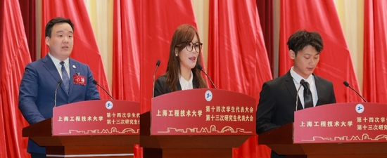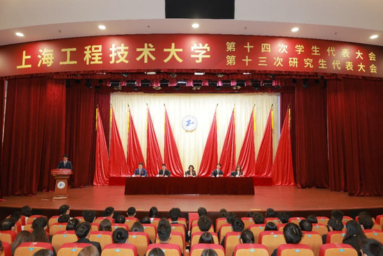 5月31日,上海工程技术大学第十四次学生代表大会、第十三次研究生代表大会在松江校区胜利召开。上海工程技术大学党委副书记、副校长朱晓青,上海市学联驻会执行主席苏弘煜,学生工作部(处)、研究生工作部部长吕宁,组织部副部长熊伟,研究生处副处长李艳梅,团委书记陈翼然,上海交通大学学生联合会执行主席张昊亮,校院两级专职团干、各学院团委书记和来自各学院15个代表团的两百余名学代会、研代会代表以及兄弟院校嘉宾出席会议。