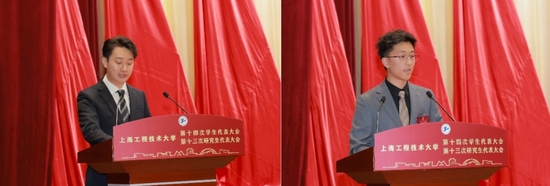 苏弘煜、张昊亮分别代表市学联及兄弟高校致辞。他们肯定了我校学生会和研究生会在创新创业、文化建设、权益生活等方面取得的成果,感谢上海工程技术大学学生会、研究生会在互学互访的交流中做出的贡献,希望我校青年能以更强的历史自觉、更高的政治标准、更实的落实举措,为中国式现代化建设贡献青春力量。