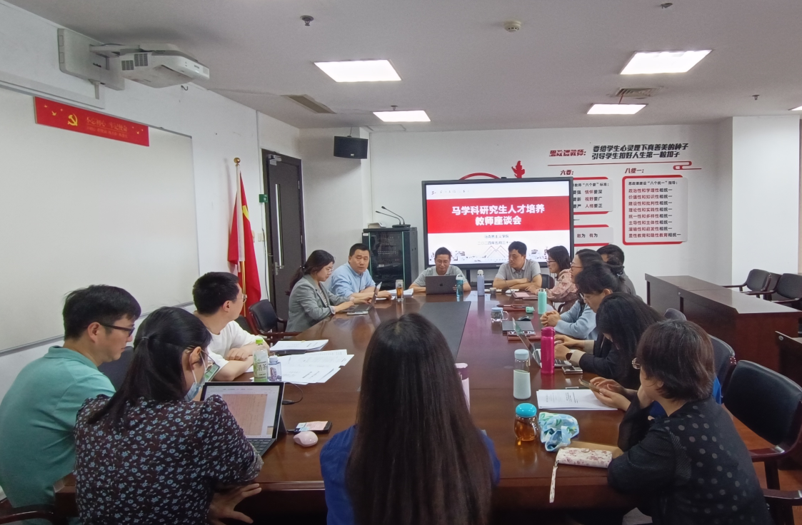 为进一步加强学位点建设,全面提升马克思主义理论学科硕士研究生创新人才培养质量, 5月31日下午,马克思主义学院在行政楼1112会议室召开研究生人才培养教师座谈会。会议由于凯副院长主持,马克思主义学院硕士研究生导师、研究生专业课任课教师参加会议。这场专题座谈会,是学院加强研究生教学质量建设、提升人才培养质量的重要一环。