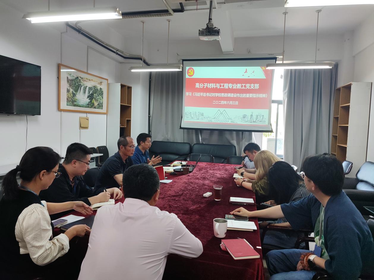 为了扎实做好课程思想建设,6月5日上午,化学化工学院党委高分子材料与工程专业教工党支部全体党员,高分子材料与工程系非党员教师和微纳制造先进材料研究团队部分教师,认真学习了习近平总书记对学校思政课建设作出的重要指示精神。会议由支部书记王继虎主持。